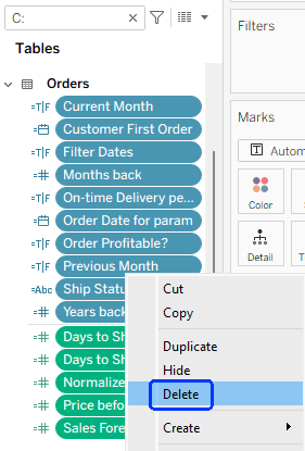 • Note that if you wish to retain any calculated fields in the data source, then they shouldn’t be deleted at this stage.