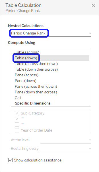Nesting table calculations occurs when one calculated field references another. That’s not a problem in itself, but what happens when we want each of these to behave differently? Compute the first using Table (across), and the second using Table (down)? I’ve found out that many developers don’t know how to do this, so here is a brief explanation.